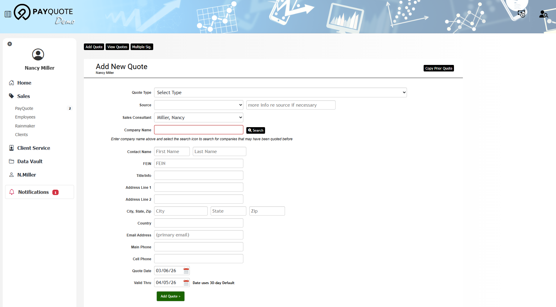 PayQuote is a fully-customizable quoting system for payroll HCM providers that automates the sales proposal process with an easy-to-use online tool for quote creation.